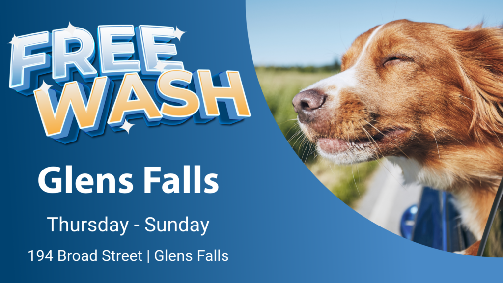 This Thursday through Sunday, to celebrate our first anniversary, we want to wash every car in Glens Falls for FREE. No catch. No purchase required. All you have to do is drive in, get a state-of-the-art car wash, and drive away with a clean car, paying nothing.
