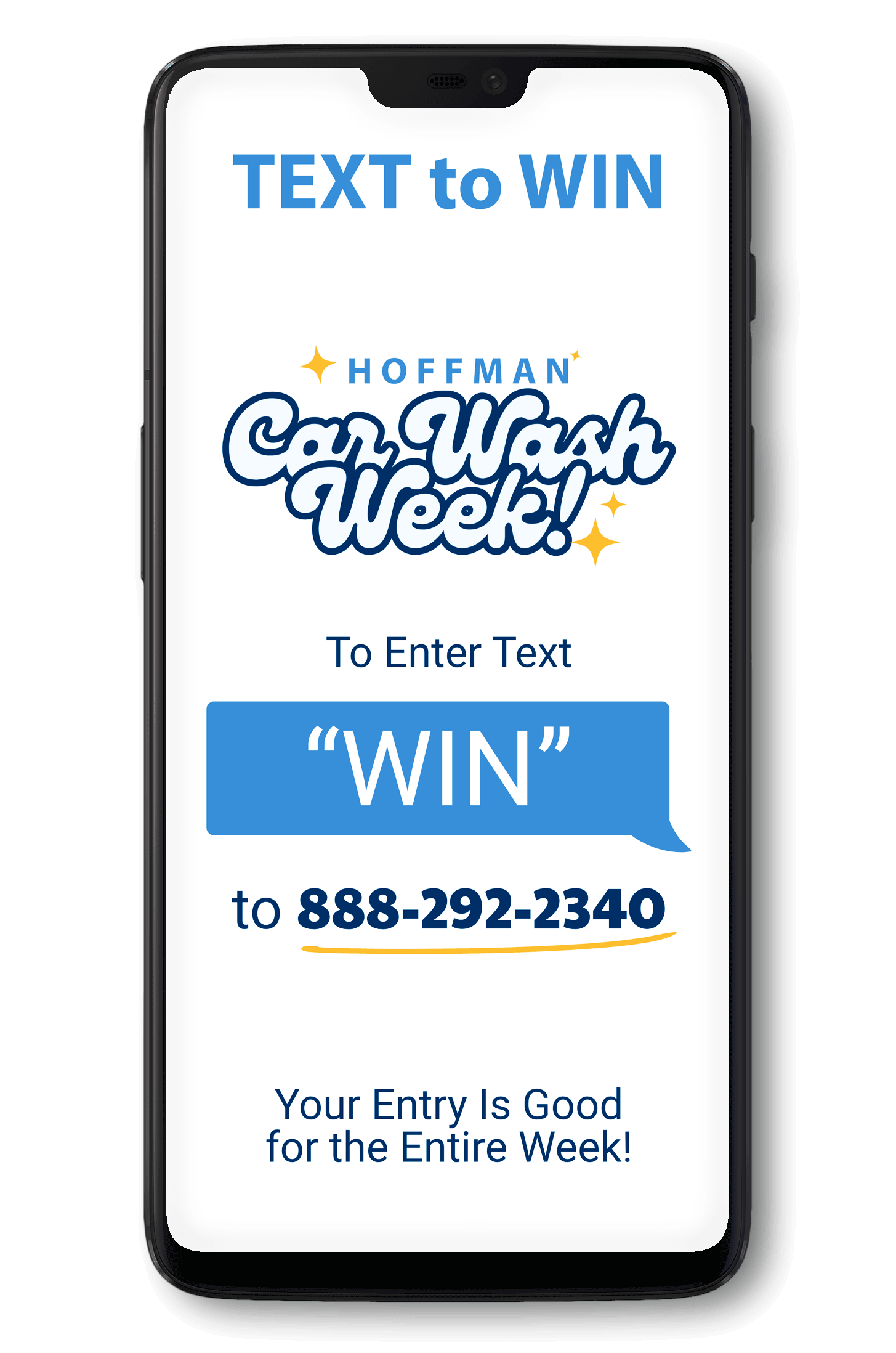 Text WIN to 888-292-2340 to enter Hoffman Car Wash Week. Enter once and you’ll automatically be included in every daily prize drawing